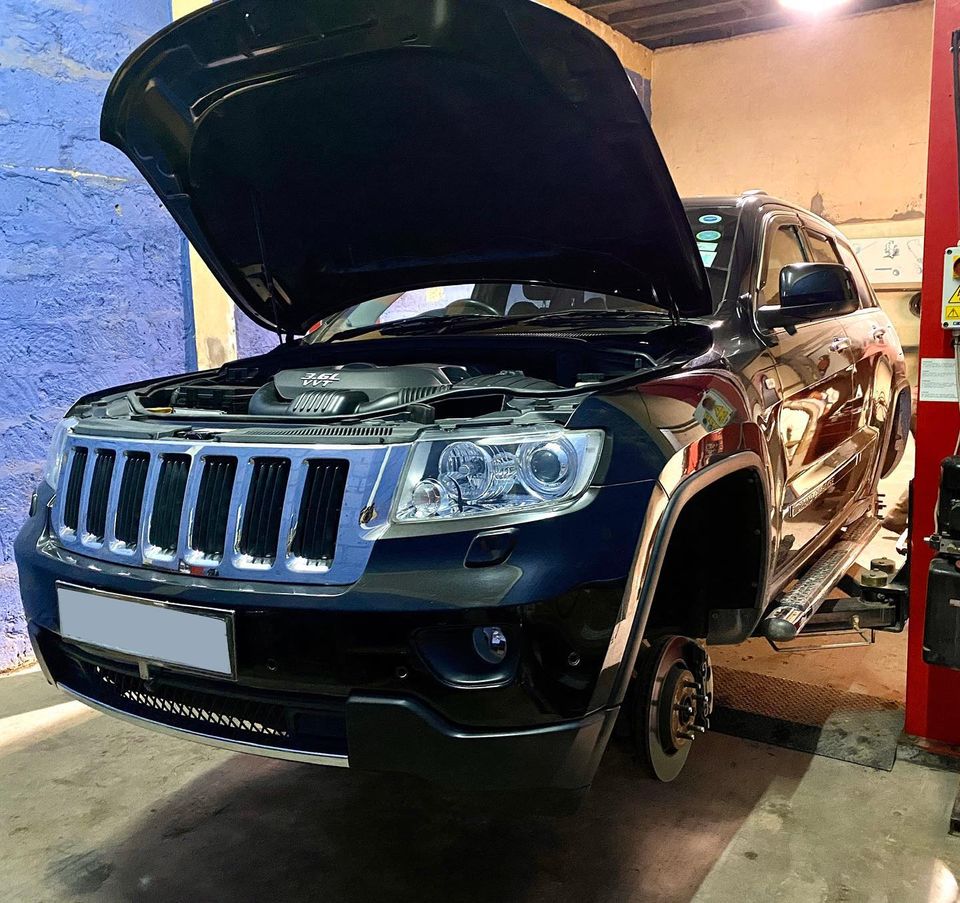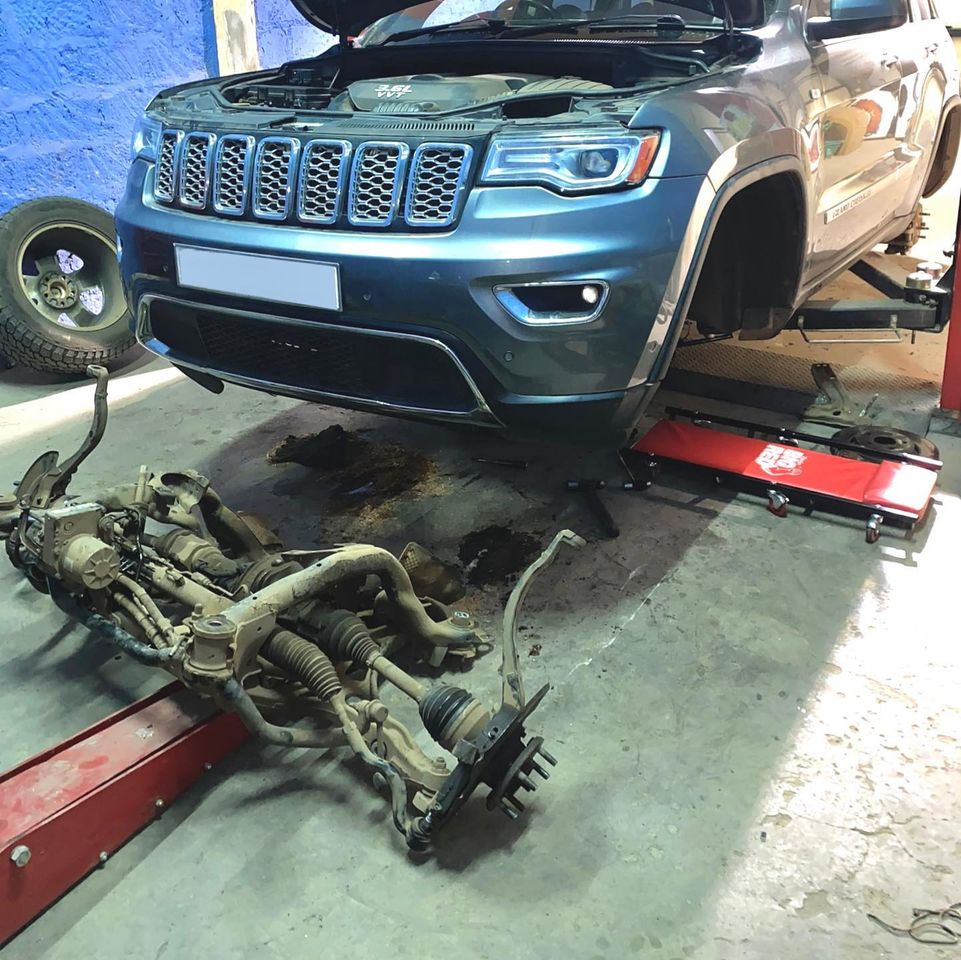 2013 Jeep Grand Cherokee came in for major suspension work. Complete front subframe replaced, steering rack & pinion replaced, differential bushes and seals, front coil-over 1.5” lift spacers.
